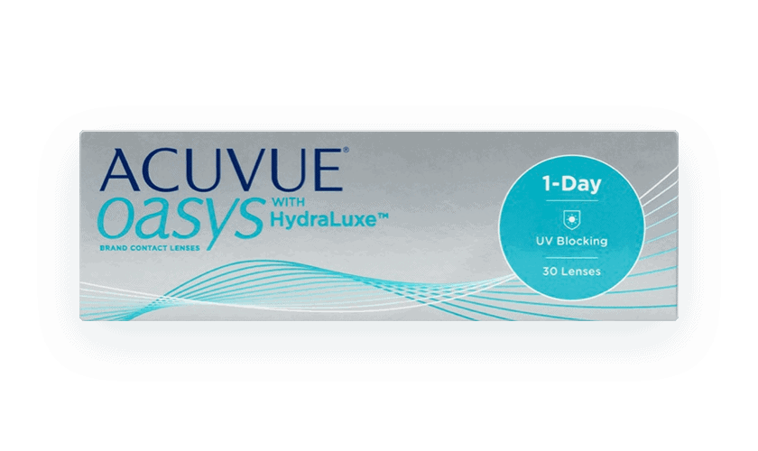 Benefits of 1 Day Acuvue Oasys: Johnson and Johnson's flagship Acuvue daily lens. One of the highest levels of UV protection available in a daily lens. HYDRALUXE™ technology offers high levels of comfort for dry eyes. If your eyes feel tired from staring at digital devices or working in challenging environments, this lens can help with your demanding days. With the highest level of UV protection available in contact lenses. Experience All-day comfort, vision and handling with our exclusive HYDRALUXE™ technology. This contact lens has tear like properties that work with your natural tear film, providing all day comfort and performance.