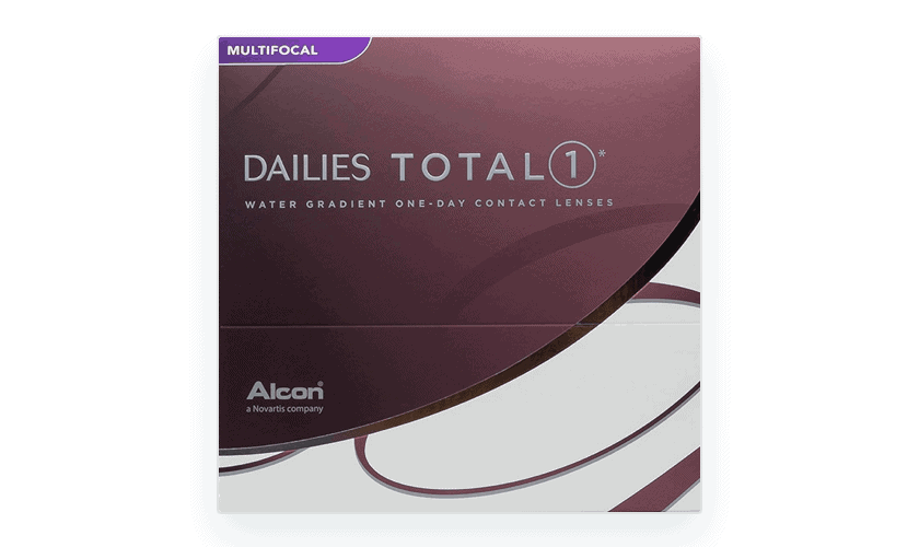 Benefits of Dailies Total 1 Multifocal contact lenses: Water gradient lenses provide plenty of moisture for your eyes. Daily disposable lenses that are super convenient and ensure the highest levels of hygiene. Ultra smooth surface reduces friction when blinking and makes application easy. Up to 16 hours of comfortable wear per day. Exceptionally breathable lenses that keep your eyes looking and feeling healthy. TOTAL1® Multifocal contact lenses approach 100% water content at the outermost surface, providing a silky-smooth surface for comfort that lasts until the end of the day. Featuring the highest oxygen transmission out of any daily disposable contact lens, try DAILIES TOTAL1® contact lenses for white, healthy-looking eyes. The Precision Profile™ design of DAILIES TOTAL1® multifocal contact lenses allows for a range of prescription strengths to blend across the lens. It works with your eyes natural function for uninterrupted clear vision, near through far.